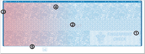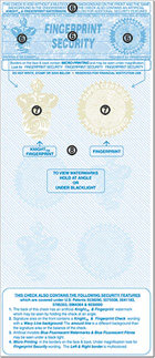 hidden covert features that are very difficult to copy or scan. The check has a multicolor